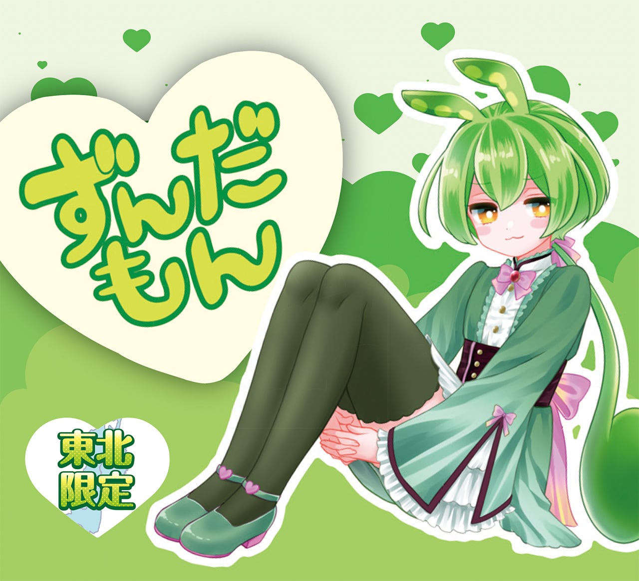 こちらは、フリルを多用にあしらった洋服を着ている「ずんだもん」がこちらに微笑んでいるデザインです。
